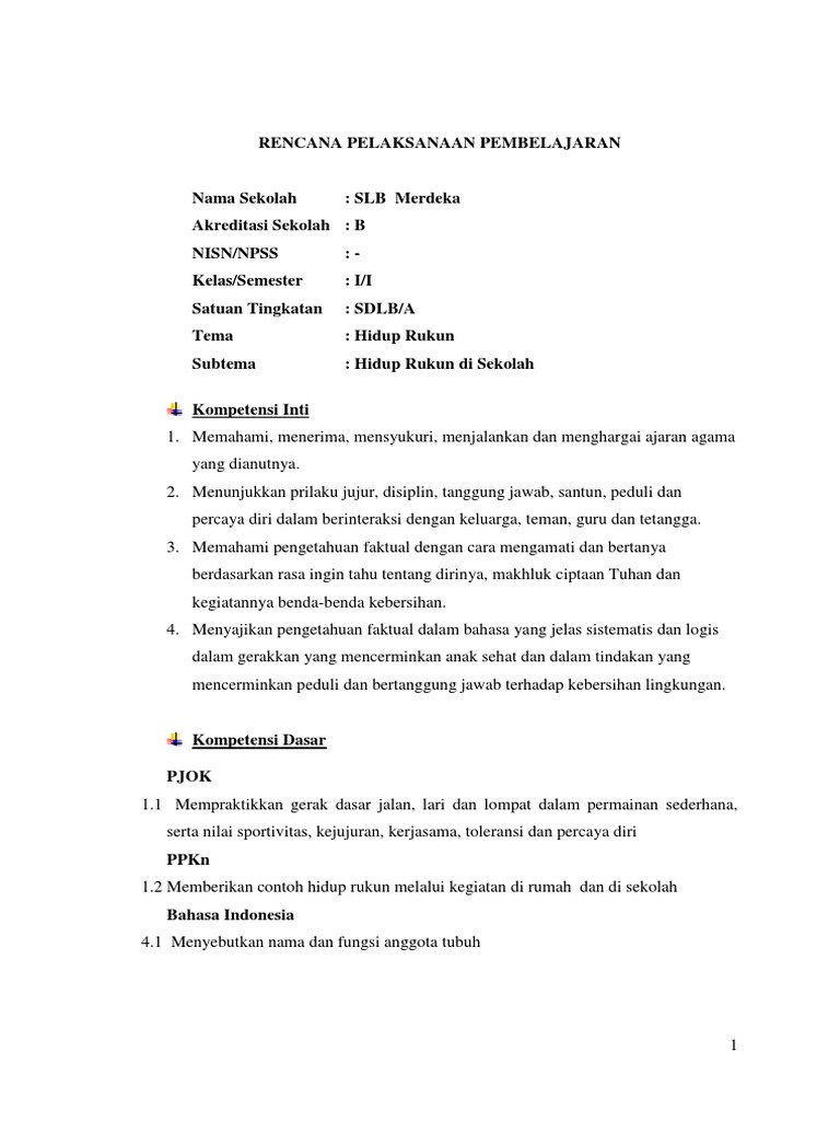 Contoh Rpp Slb 1 Lembar Idsch Id from idsch.id Lembar penilaian sikap sosial (disiplin). Contoh rpp slb 1 lembar idsch id. Disetiap awal subtema, terdapat lembar untuk orangtua yang berjudul belajar di rumah. Rencana pelaksanaan pembelajaran atau sering di singkat dengan rpp, merupakan rencana kegiatan pembelajaran tatap muka untuk satu pertemuan atau lebih. Silabus merupakan acuan penyusunan kerangka pembelajaran untuk setiap bahan kajian mata pelajaran. Dalam edaran yang ditujukan kepada seluruh kepala dinas pendidikan provinsi dan. Rencana pelaksanaan pembelajaran autis kelas 2 ktsp.docx. Harris iskandar, ph.d sebagai plt.